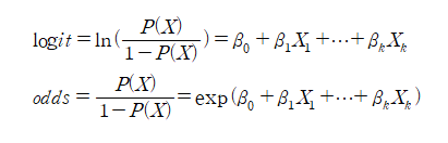 -logit 식의 양변에 지수(exponential)을 취하면 좌변이 오즈(odds: 성공확률/실패확률)가 되므로 'X가 한 단위 증가할 때 odds가 exp(beta)배로 증가/감소한다'고 해석